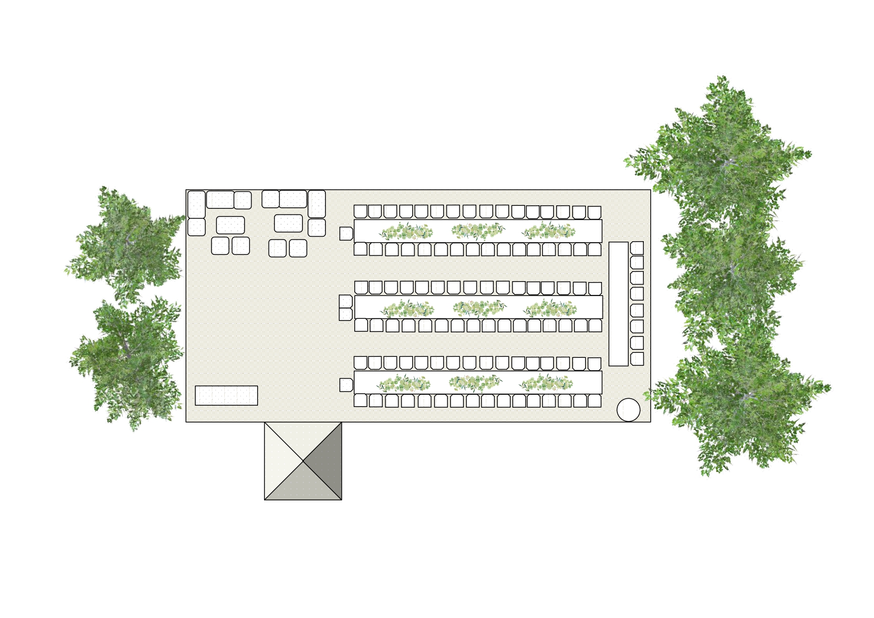 Home / Marquee Floor Plan – 100 Guests 9m x 18m – Long Trestle Tables / LongTestle-Marquee-100Guest-feat