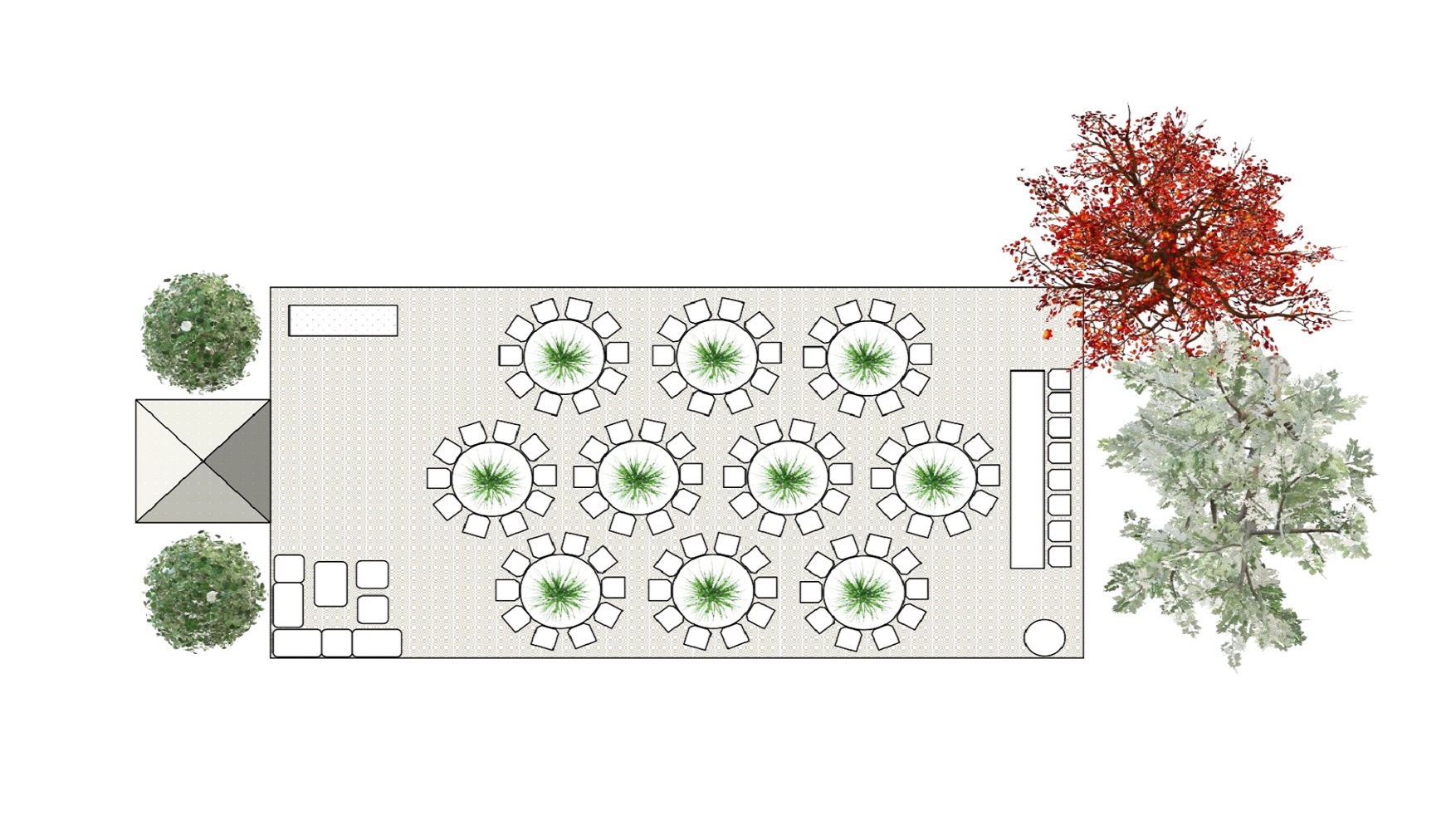 Home / Marquee Floor Plan – 100 Guests 9m x 18m – Round Trestle Tables / RoundTrestle-Marquee-100Guest-feat 2