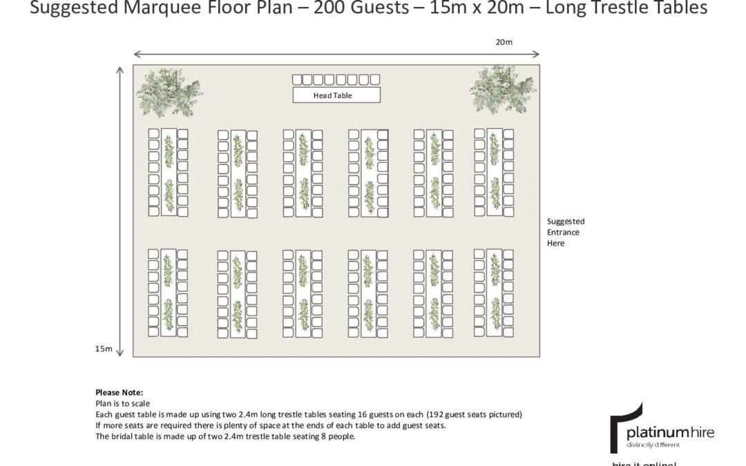 Home / Marquee Floor Plan – 200 Guests 15m x 30m – Long Trestle Tables / Wedding-Floor-Plan-200-Guests-15m-x-20m-Marquee