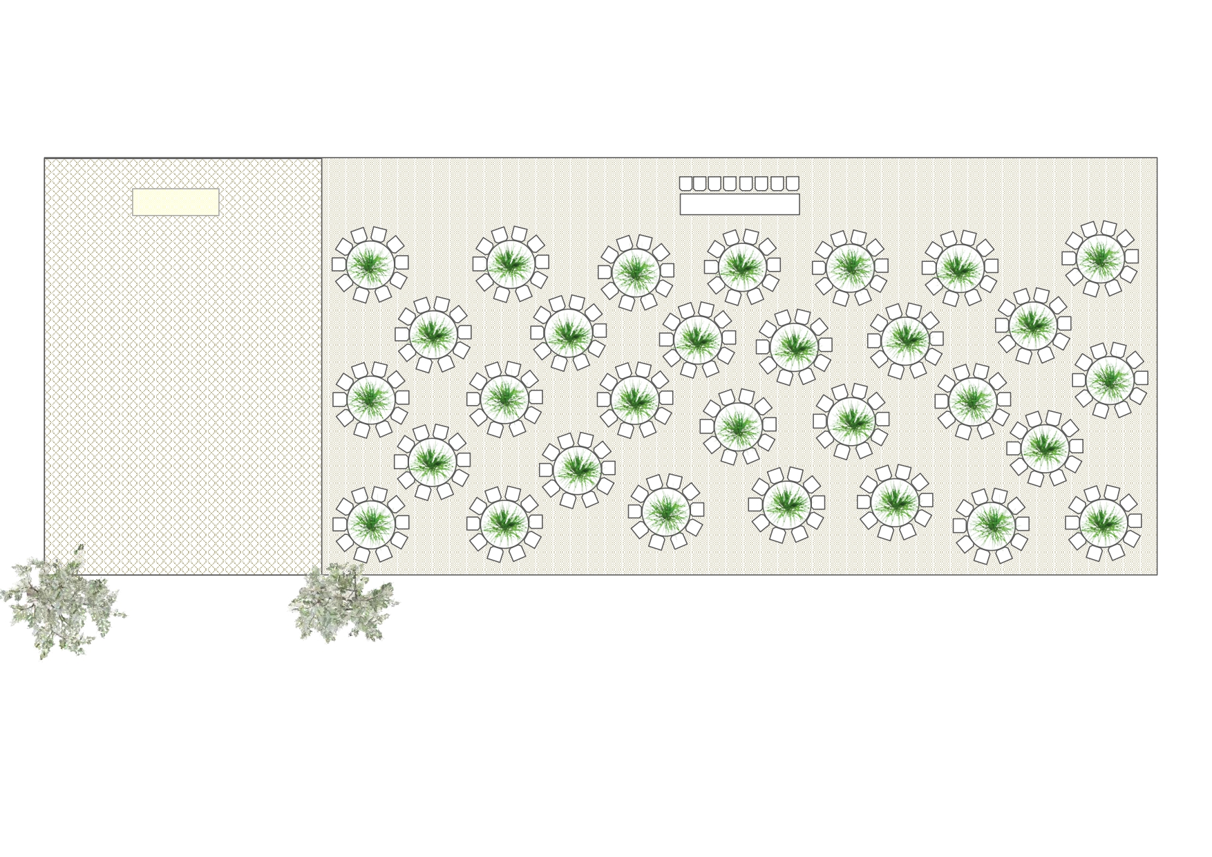 Home / Marquee Floor Plan – 300 Guests 15m x 40m – Round Trestle Tables / RoundTrestle-Marquee-300Guest-feat