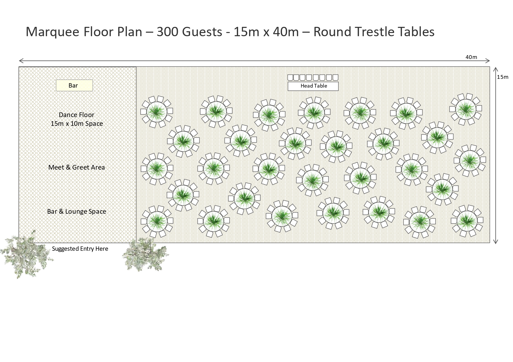 Home / Marquee Floor Plan – 300 Guests 15m x 40m – Round Trestle Tables / RoundTrestle-Marquee-300Guest-img